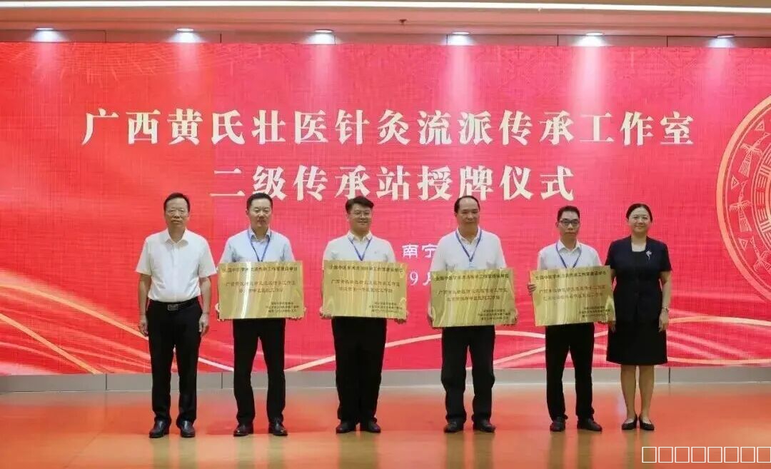 会上,举行了广西黄氏壮医针灸流派传承工作室二级传承站授牌仪式。国务院特殊津贴专家、集团董事长李浪辉作为黄瑾明教授的弟子,登台领取集团旗下单位强寿中医医院获黄瑾明教授授予广西黄氏壮医针灸流派传承工作室二级传承站。此次传承站的授予,是强寿集团以及旗下单位强寿中医医院创办广西首家AI赋能医院+医药制造之后,在医学诊疗技术、人才培养方面再次获得质的提升。